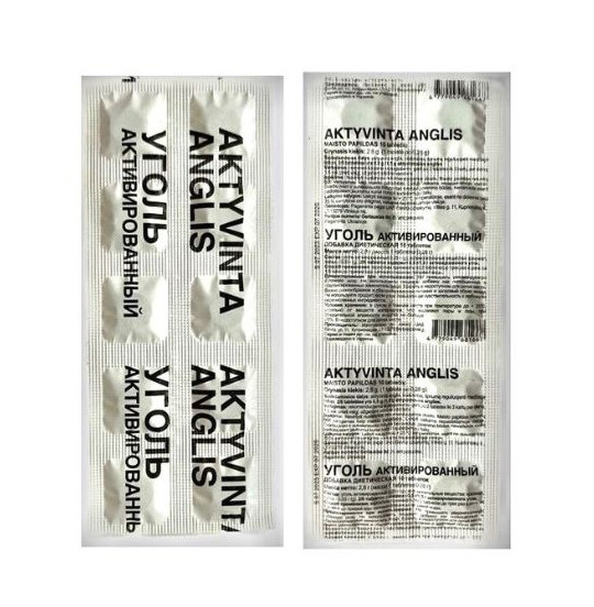 Zloženie: Aktivované uhlie 0,25 g, pomocné látky: škrob, talk - 0,03 g.