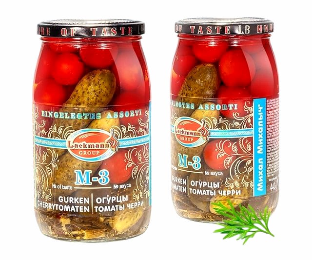 • nahlad Assorti okurky a cherry rajčata M-3 900 g Lackmann