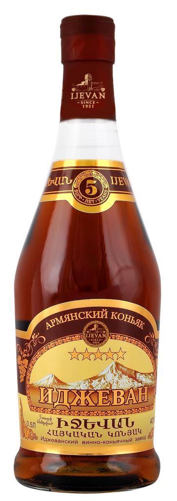 Brandy 5 rokov 0,5L 40% IJEVAN sa vyrába z hroznového vína pestovaného na viniciach v Arménsku. Vynikajúce vyvážené brandy slámové farby má výraznú príchuť vanilky a orechov. Vyniká svojou plnosťou, jemnosťou a dlhotrvajúcou chuťou. Doba zrenia brandy v dubových sudoch je minimálne 5 rokov. Odporúča sa podávať pri izbovej teplote.