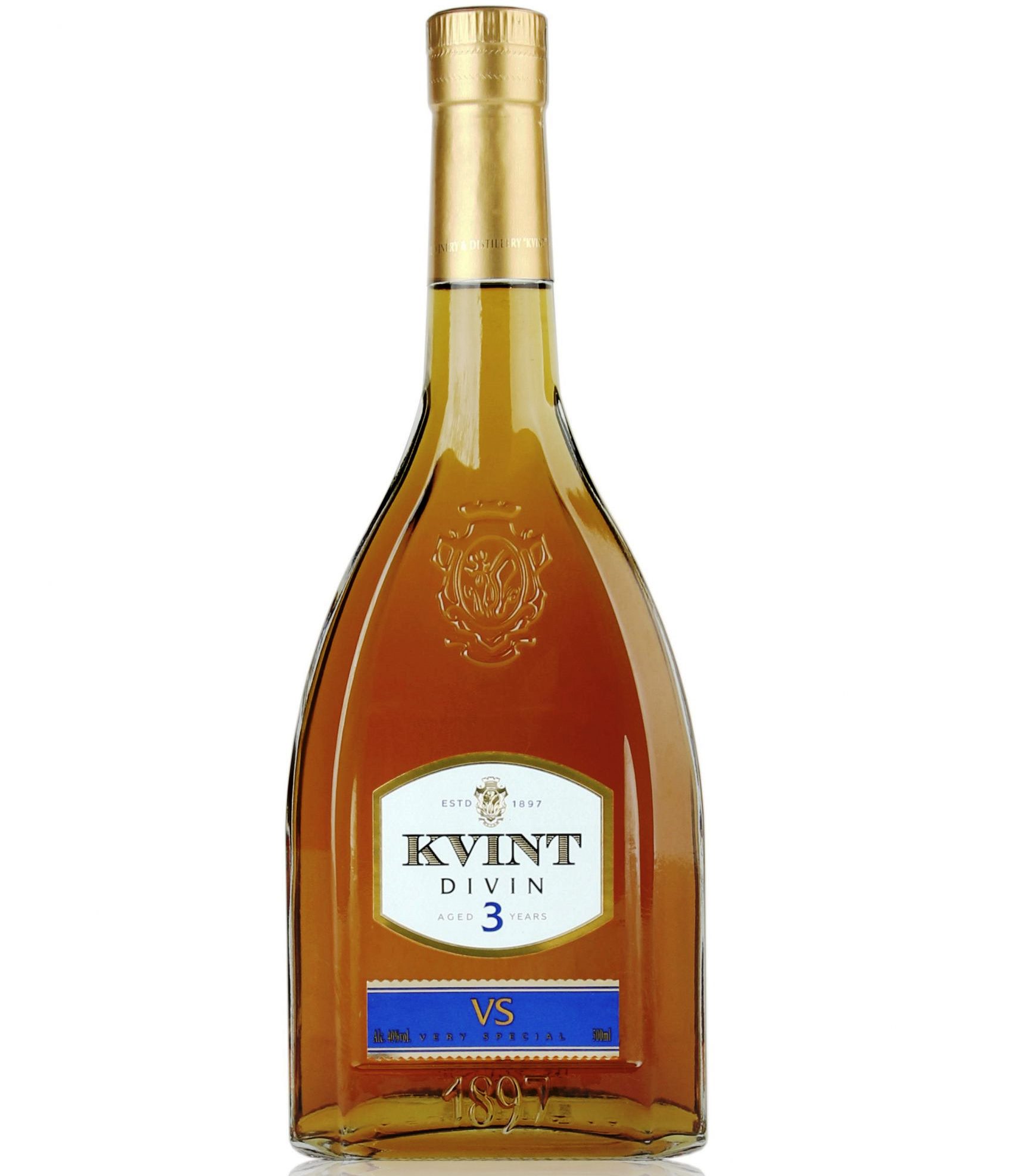 Brandy Divin 3 roky 0,5L 40% KVINT vyrábaná tradičným koniakovým spôsobom z vybraných hrozien európskych a miestnych odrôd pestovaných vo viniciach KVINT v Moldavsku, dozrievajúcich najmenej 3 roky v dubových sudoch. Harmonicky vyvážená, vyniká vôňou božských tónov, vďaka čomu je ideálna na miešanie koktailov.