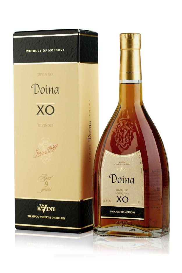Brandy Doina 9 rokov 0,5L 40% KVINT vyrobený tradičným spôsobom z výberových hrozien európskych a miestnych odrôd pestovaných na viniciach KVINT v Moldavsku, zrelých najmenej 9 rokov v dubových sudoch. Vyrába sa od roku 1957. Zlatisto-jantárová farba tohto destilátu je žiarivá, úžasná. Prevažujú tu kvetinové tóny.