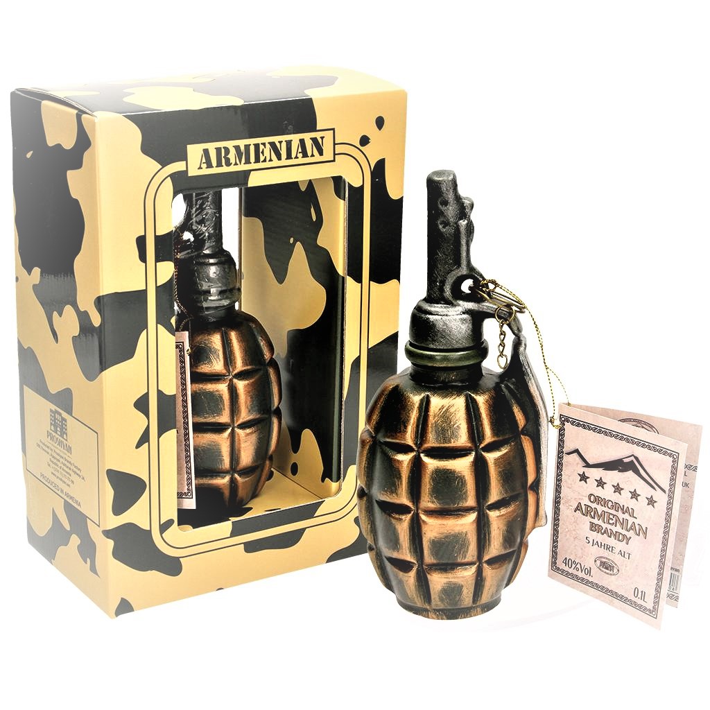 Brandy Granát 7 rokov 0,1L 40% PROSHYAN v ručne vyrobenom darčekovom balení z keramiky. Vyrába sa z hroznového vína odrody Kangun pestovaného na viniciach v Arménii. Vyvážený brandy jantárovej farby má jemnú vôňu vanilky a orechov. Vyniká svojou plnosťou, jemnosťou a dlhotrvajúcou chuťou. Doba zrenia brandy v dubových sudoch je minimálne 7 rokov.