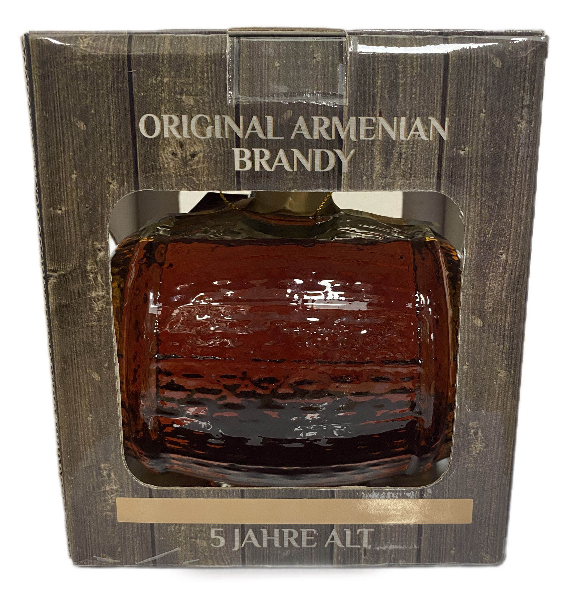 Brandy Sud 5 rokov 0,75L 40% PROSHYAN sa vyrába z hroznového vína odrody Kangun pestovaného na viniciach v Arménsku. Vyvážený brandy jantárovej farby má jemnú vôňu vanilky a orechov. Vyniká svojou plnosťou, jemnosťou a dlhotrvajúcou chuťou. Doba zrenia brandy v dubových sudoch je minimálne 5 rokov.