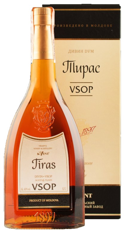 Brandy Tiras 6 let 0,5L 40% KVINT, vyrábaná tradičným spôsobom z vybraných hrozna európskych a miestnych odrôd pestovaných v vinohradoch KVINT v Moldavskej republike, dozrievajúcich minimálne 6 rokov v dubových sudoch. Vyrába sa od roku 1897. Zlatá a jantárová farba tejto brandy je brilantná, nádherná. Vynikajú tu kvetinové tóny.
