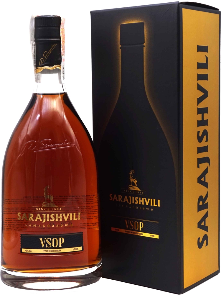 Prirodzená rovnováha síl a harmónie tvorí z Brandy VSOP 0,7L 40% Sarajishvili výnimočný produkt, ktorý je tvorený zmesou prémiových destilátov vyrábaných z gruzínskych hrozienok, pričom doba zrenia v dubových sudoch najstaršieho z nich presahuje 12 rokov. Brandy vyniká jantárovou farbou, chuťou a vôňou sušeného ovocia, sliviek, škorice a vanilky, ktorá je typická pre dlhé zrenie brandy. Brandy má dokonale vyváženú chuť, pričom je zároveň výrazná a intenzívna. Odporúča sa piť malými dúškami, zahriate na izbovú teplotu.