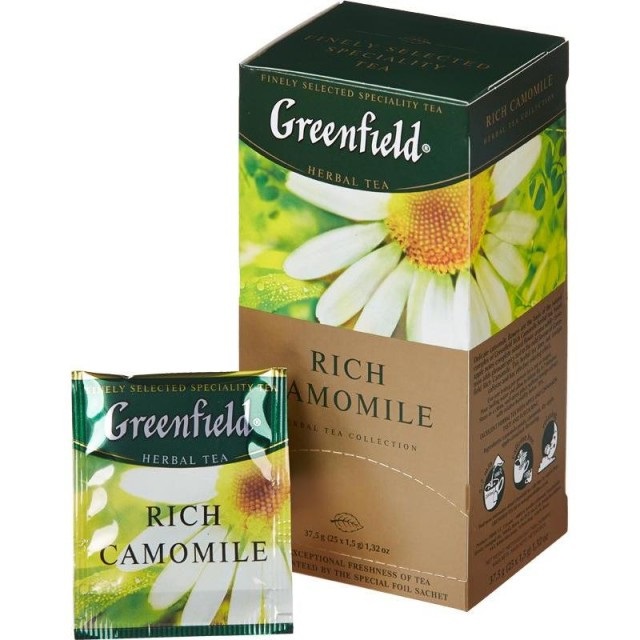 Základem přírodního komplexu přírodního bylinného nápoje Rich Kamomail jsou jemné květy heřmánku. Nasládlý nádech sušených jablek doplňuje přirozenou květinovou chuť, zatímco skořice přináší příjemný nádech do jemných tónů Greenfield Rich Camomile. Neobsahuje kofein, podporuje relaxaci.
