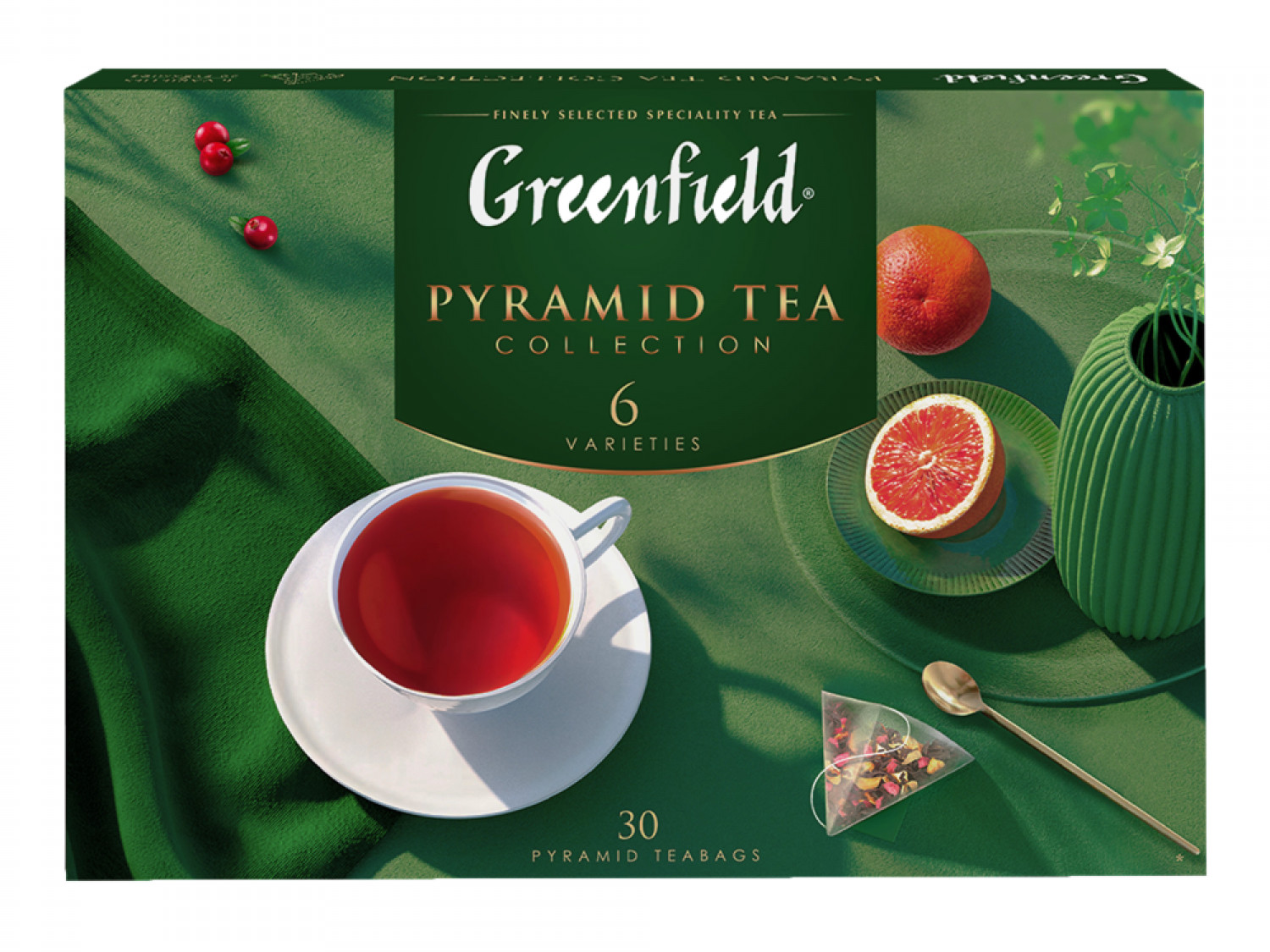 Zloženie sady: Greenfield Rich Ceylon, Greenfield Royal Earl Grey, Greenfield Classic Genmaicha, Greenfield Milky Oolong, Greenfield Sicilian Citrus, Greenfield Redberry Crumble.