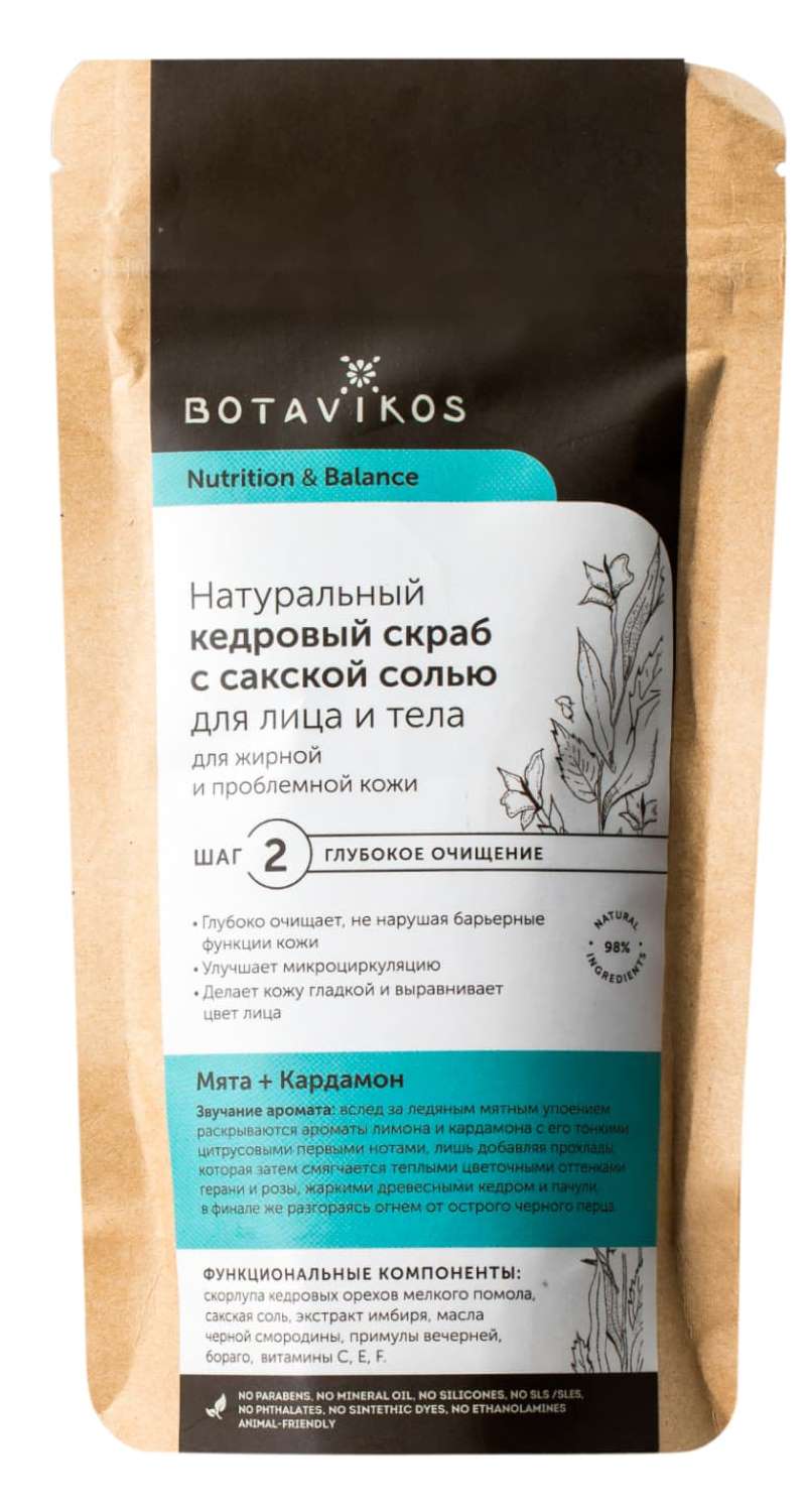 Přírodní cedrový peeling se sakskou solí na obličej a tělo. Pro mastnou a problematickou pleť. Funkční složky: jemně mleté ​​skořápky piniové oříšky, sakská sůl, zázvorový extrakt, kyselina salicylová, oleje z černého rybízu, pupalkový olej, brutnák lékařský, vitamíny C, E, F. Peeling hluboce čistí, aniž by narušoval bariérové ​​funkce pokožky, zlepšuje mikrocirkulaci, dělá pokožku hladkou a vyrovnává pleť. Vytvořeno pro kompletní péči o mastnou a problematickou pleť. Rozdrcené skořápky borovice a jemně mleté ​​krystaly mořské soli jsou zodpovědné za hloubkové čištění pokožky od nečistot, odstraňování odumřelých buněk z povrchu pokožky, aktivaci metabolických procesů a podporu toku kyslíku a aktivních živin do pokožky, vyrovnávání úlevy, dávat tón. Zázvorový extrakt obsahuje biologicky aktivní látky, které zlepšují strukturu pokožky a mají hojivý účinek.