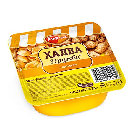 Chalva „Družba“ s arašidmi od továrne „Rot Front“ je voňavá orientálna pochúťka, ktorá spája intenzívnu chuť arašidov s tradičnou sezamovou arómou. Vďaka pridaným celým arašidom má chalva bohatú chuť s pikantnými arašidovými tónmi, horkým sezamovým duchom, jemnými vanilkovými podtónmi a sladkosťou cukrového sirupu. Jemná vrstvená štruktúra chalvy sa dopĺňa chrumkavými jadierkami arašidov.