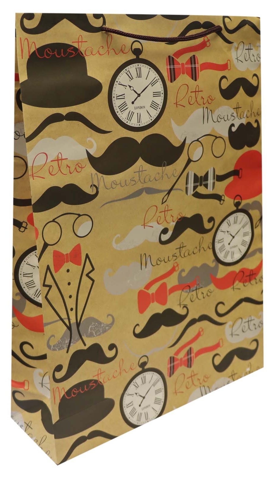 Darčeková taška Hodinky a fúzy 26x33 kraftova