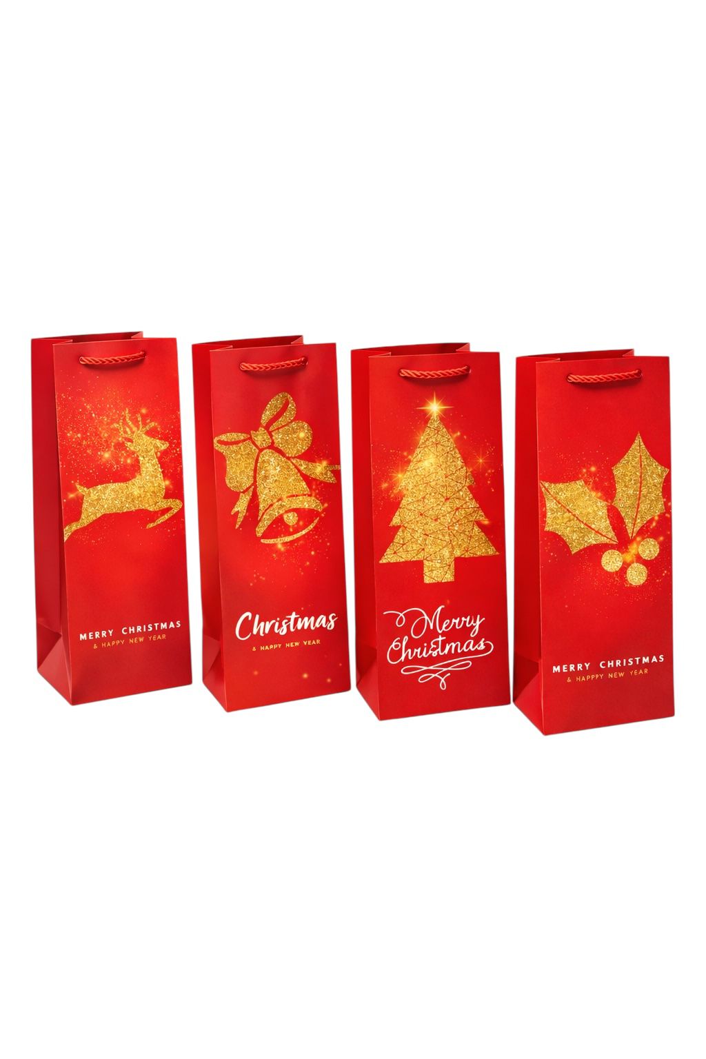 Darčeková taška na fľašu 35×12 cm „Mix Nový rok“ červené