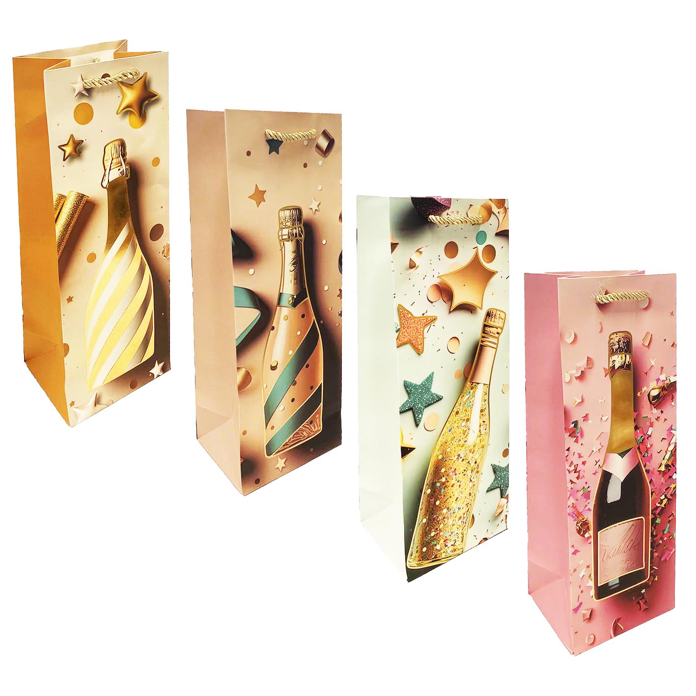 Darčeková taška na fľašu „Šampanské a hviezdičky“ 36×13cm