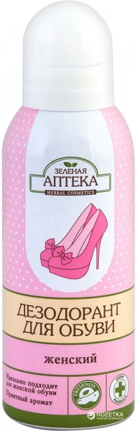 Dezodorant je organickým doplnkom dámskej obuvi. Výrobok účinne zabraňuje vzniku nepríjemného zápachu, intenzívne ho odstraňuje, keď už vznikol a má príjemnú vôňu. Výrobok zachováva priaznivú mikroklímu vo vnútri topánky, dlhodobo blokuje výskyt baktérií. Výrobok je vhodný pre akýkoľvek materiál. Môže byť použitý na kožu, koženku, semiš a ďalšie možnosti, pretože dezodorant nepokazí topánky.