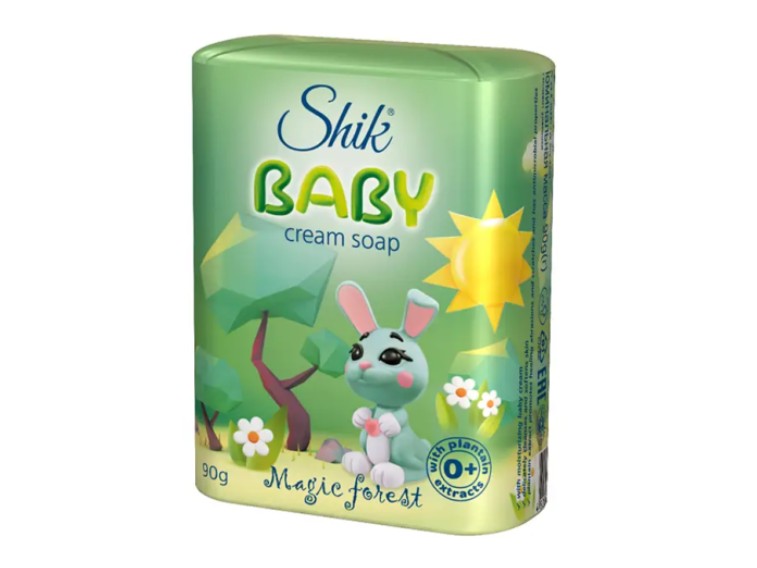 Detská pokožka je oveľa jemnejšia a citlivejšia než pokožka dospelých. Preto špecialisti vedecko-výrobného laboratória vyvinuli jemné detské mydlo Shik, ktoré neobsahuje farbivá a je obohatené o komplex rastlinných zložiek a detský krém. Tieto zložky chránia prirodzenú ochrannú bariéru detskej pokožky a poskytujú jemnú starostlivosť.