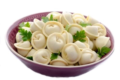 Návod k přípravě: Do osolené vroucí vody (2L) vložíme pelmeně (500g), dobře zamícháme a necháme vařit na mírném ohni 8-10 min. Vyjmeme z vody, ochutíme kouskem másla a zakysanou smetanou.