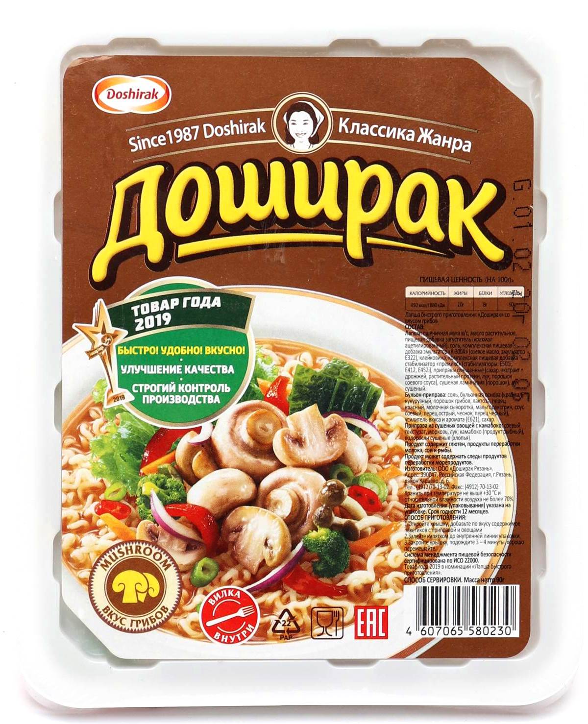 Zloženie: rezance (prémiová pšeničná múka, rastlinný olej, zahusťovadlo potravinárskych prísad (acetylovaný škrob), soľ, emulgátor potravinárskych prísad „K-300A“ (sójový olej, E322), lepok, komplexný stabilizátor potravinárskych prísad „pre1x“ E452i), "sójový" výrobok (prášok zo sójovej omáčky, cukor, soľ, kvasnicový extrakt, vyprážaná cibuľa), sušená cibuľa. Soľ, polievka-korenie (vývar základňa (kukuričný škrob, hubový prášok, laktóza, červená , sójová omáčka, feferónka, cesnak, čierne korenie), látka zvýrazňujúca chuť a arómu E621, cukor.