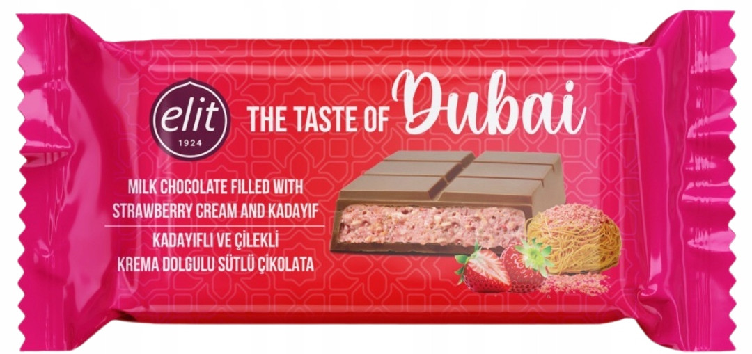 Dubajská čokoláda Elit (90 g) je prémiový produkt, ktorý spája vysoko kvalitné ingrediencie a jedinečnú chuť. Tento produkt je ideálny pre tých, ktorí ocenia skutočnú kvalitu a jedinečné sladkosti.