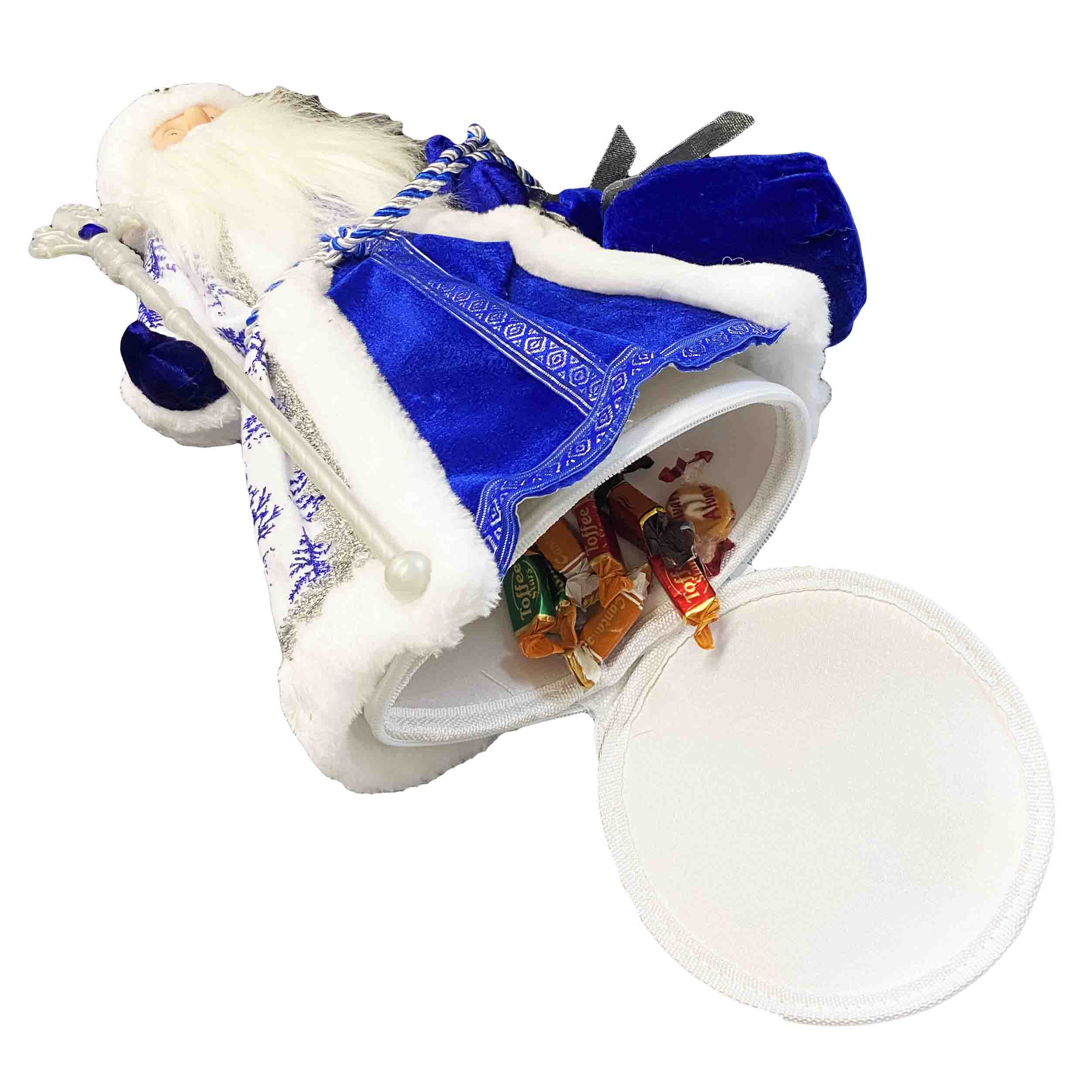 Figúrka Deda Mráza v modro-bielej so striebrom, s oddelením na sladkosti a darčeky, 40 cm