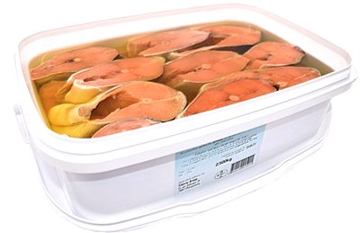 Složení: hrbatý losos, řepkový olej, sůl, zvýrazňovač chuti: E621, okyselovač: E331, E330, regulátor kyselosti E575, konzervant E211.