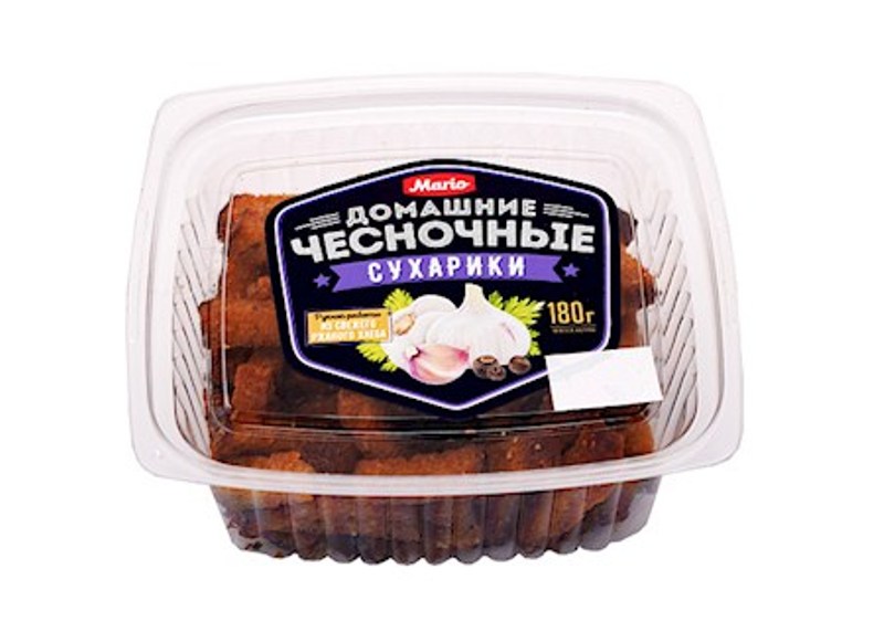 Složení: chlebové krutony (žitná mouka, voda, pšeničná mouka, cukr, nefermentovaný žitný slad, sójové bílkoviny, droždí, sůl, acerola mouka), rafinovaný olej, česnek 7,5%, sůl.