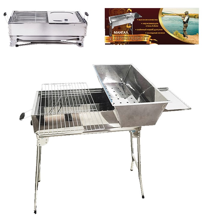 Mangal PRESIDENT je ideálnou kombináciou vysokej kvality a pohodlného použitia. Vyrobený z nerezovej ocele s hrúbkou 0,8 mm, tento mangal zaručuje odolnosť a spoľahlivosť pri použití ako vonku v prírode, tak doma.