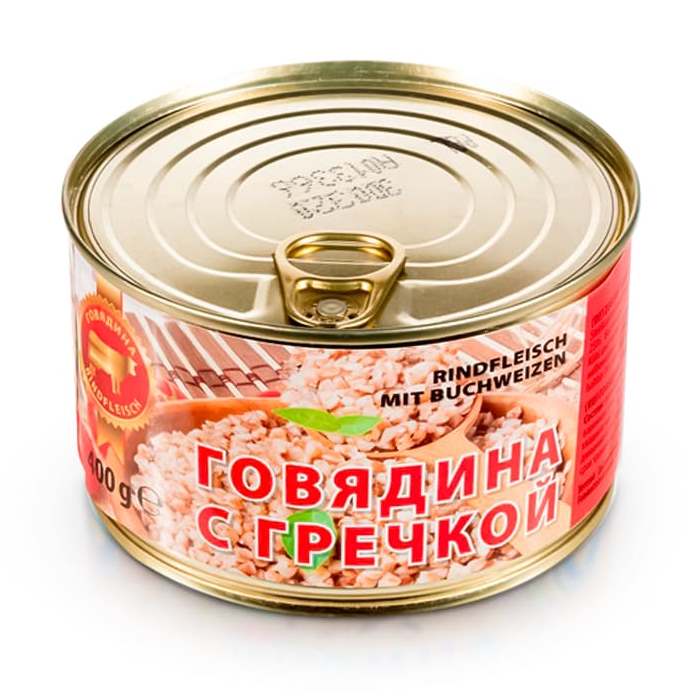 Zloženie: pitná voda, hovädzie mäso 25%, pohánka 24%, jedlá soľ, cibuľa, mrkva, korenie.