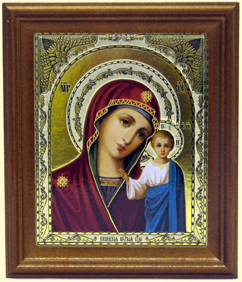 Ikona BM Kazanskaja 11x13cm drevená so sklom