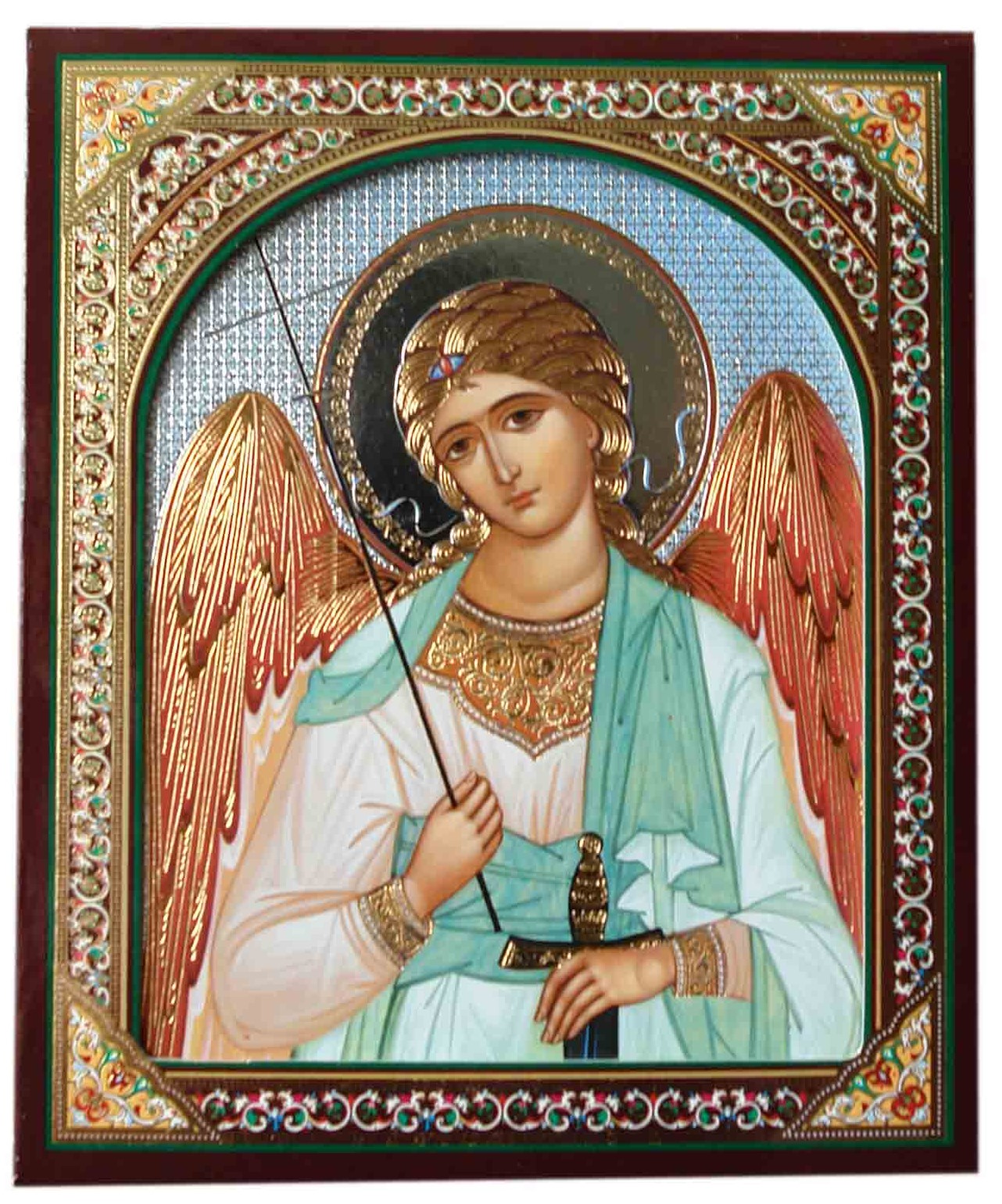 Ikona drevená Angel Chranitel 15×18 cm v puzdre (modré pozadie)
