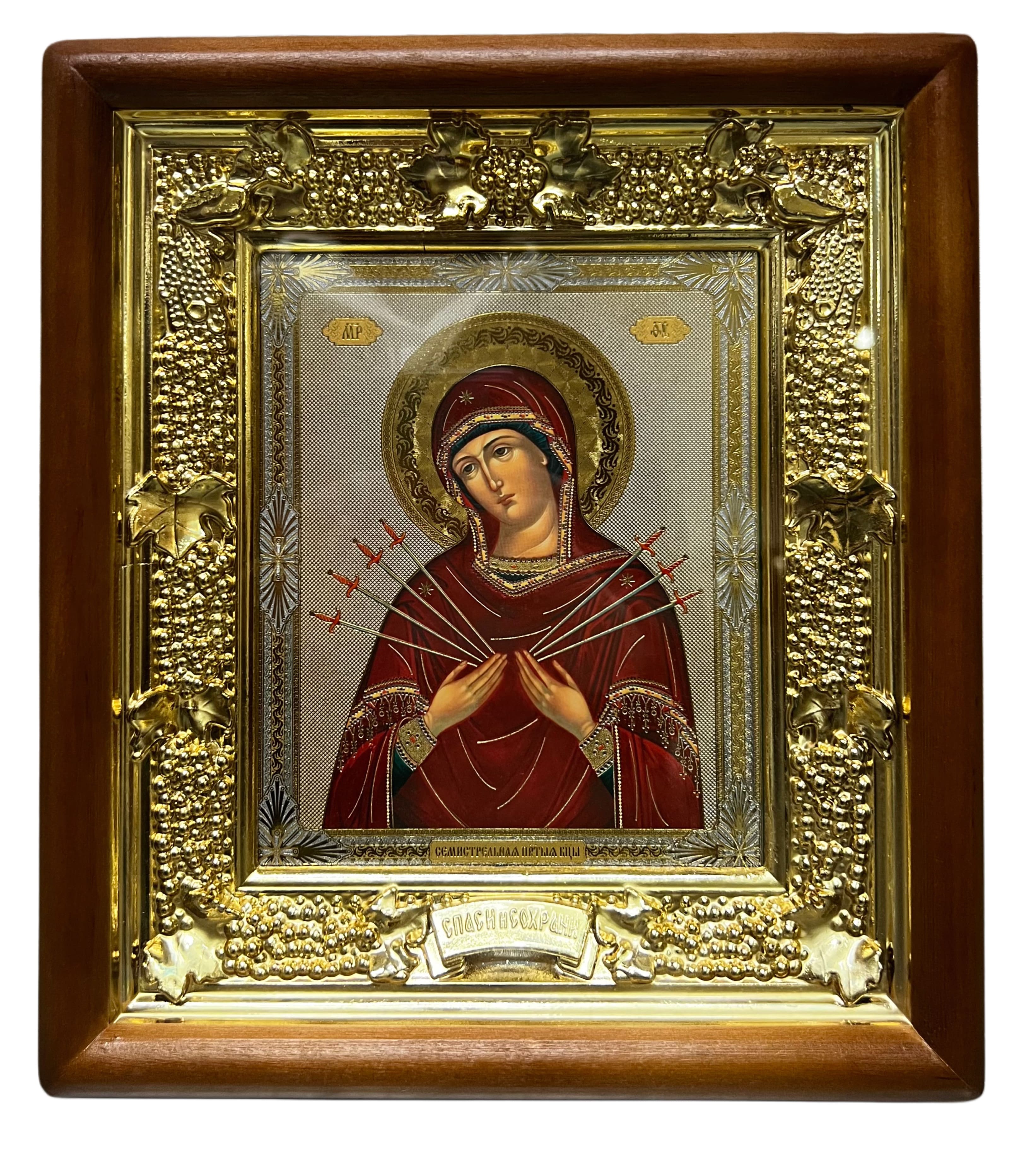Drevená ikona hrozno 15x18 cm Semistrelnaja (strieborné pozadie)