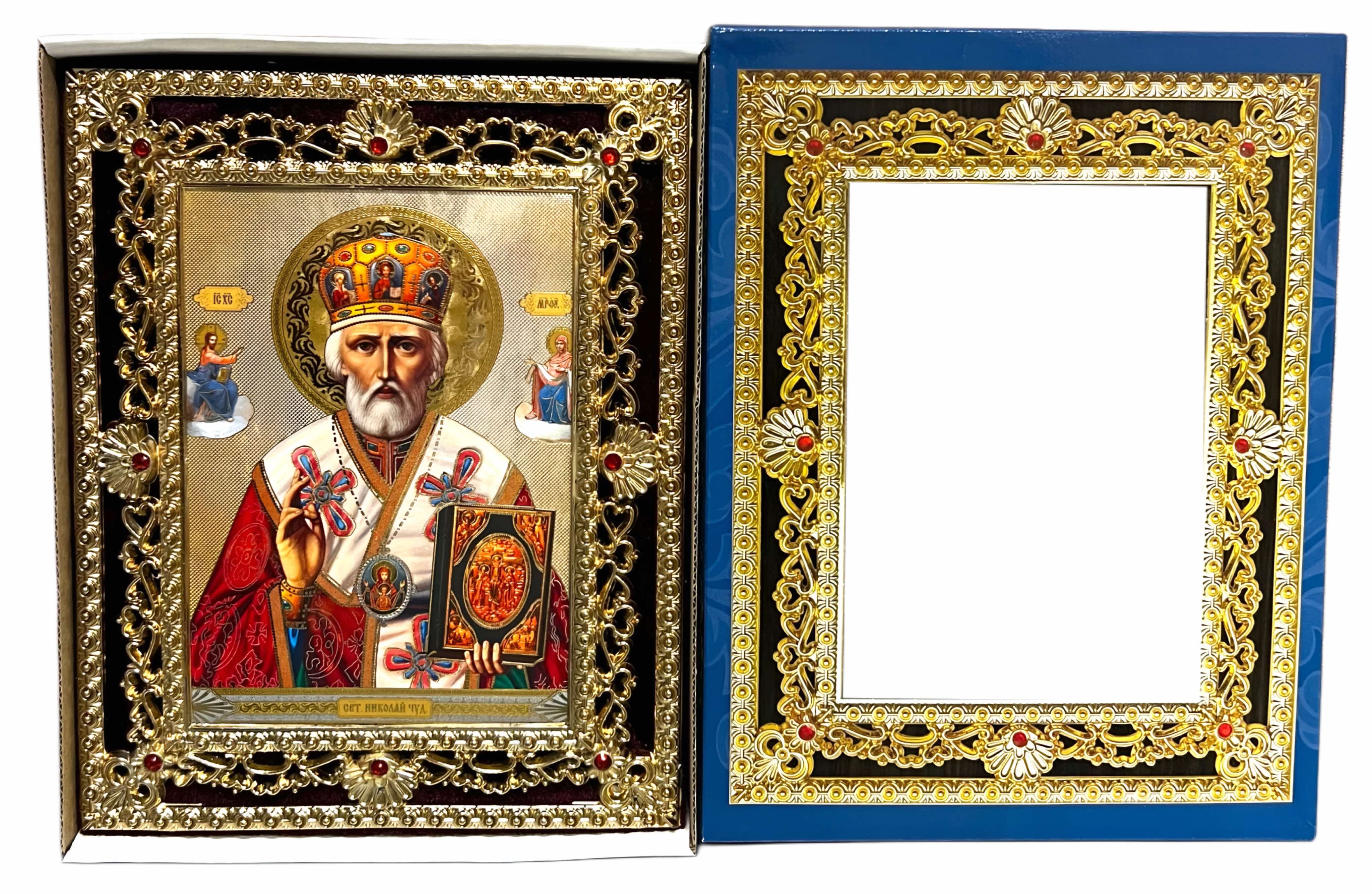 Ikona drevená Nikolaj 15×18 cm v modrom puzdre.