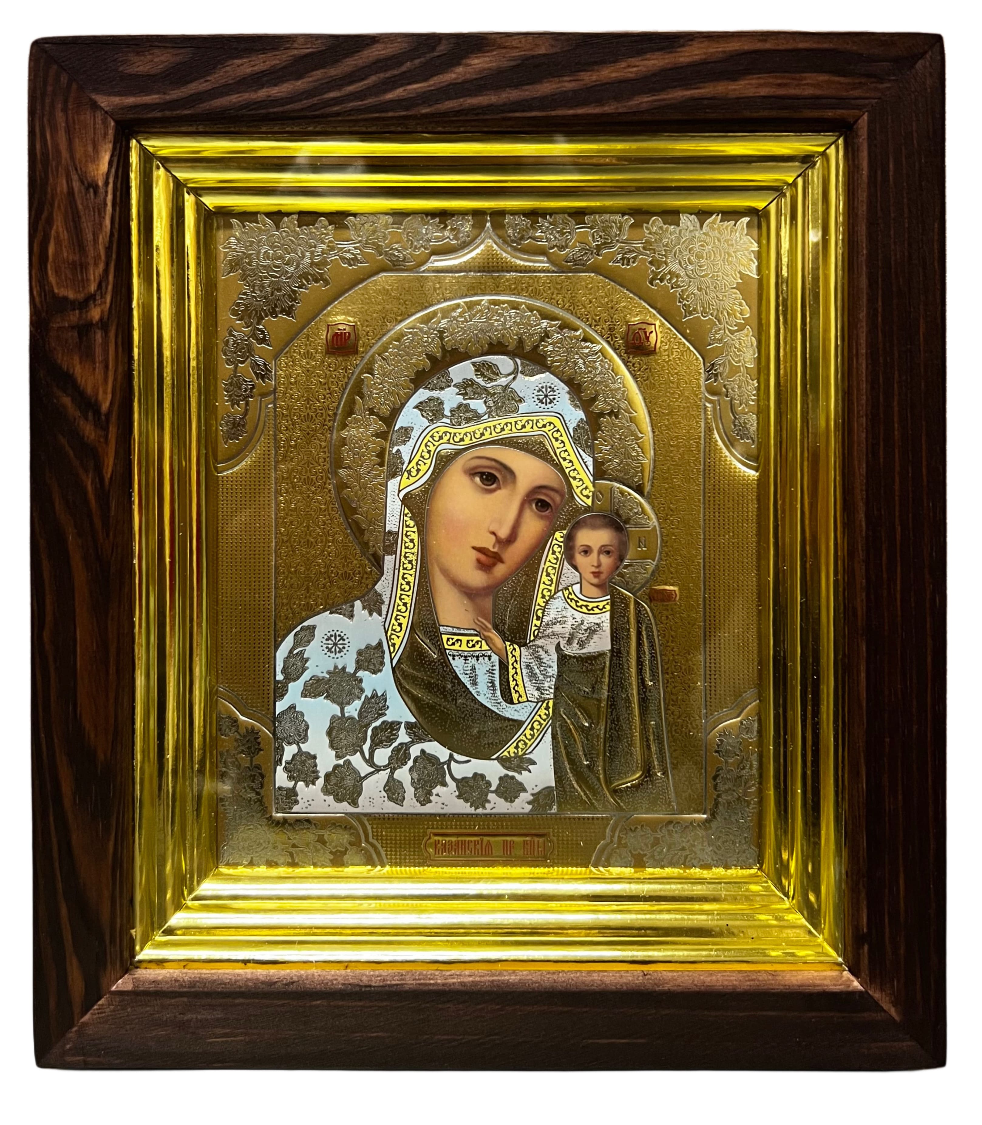 Drevená ikona so sklom 15x18 cm Kazanská (zlatá)
