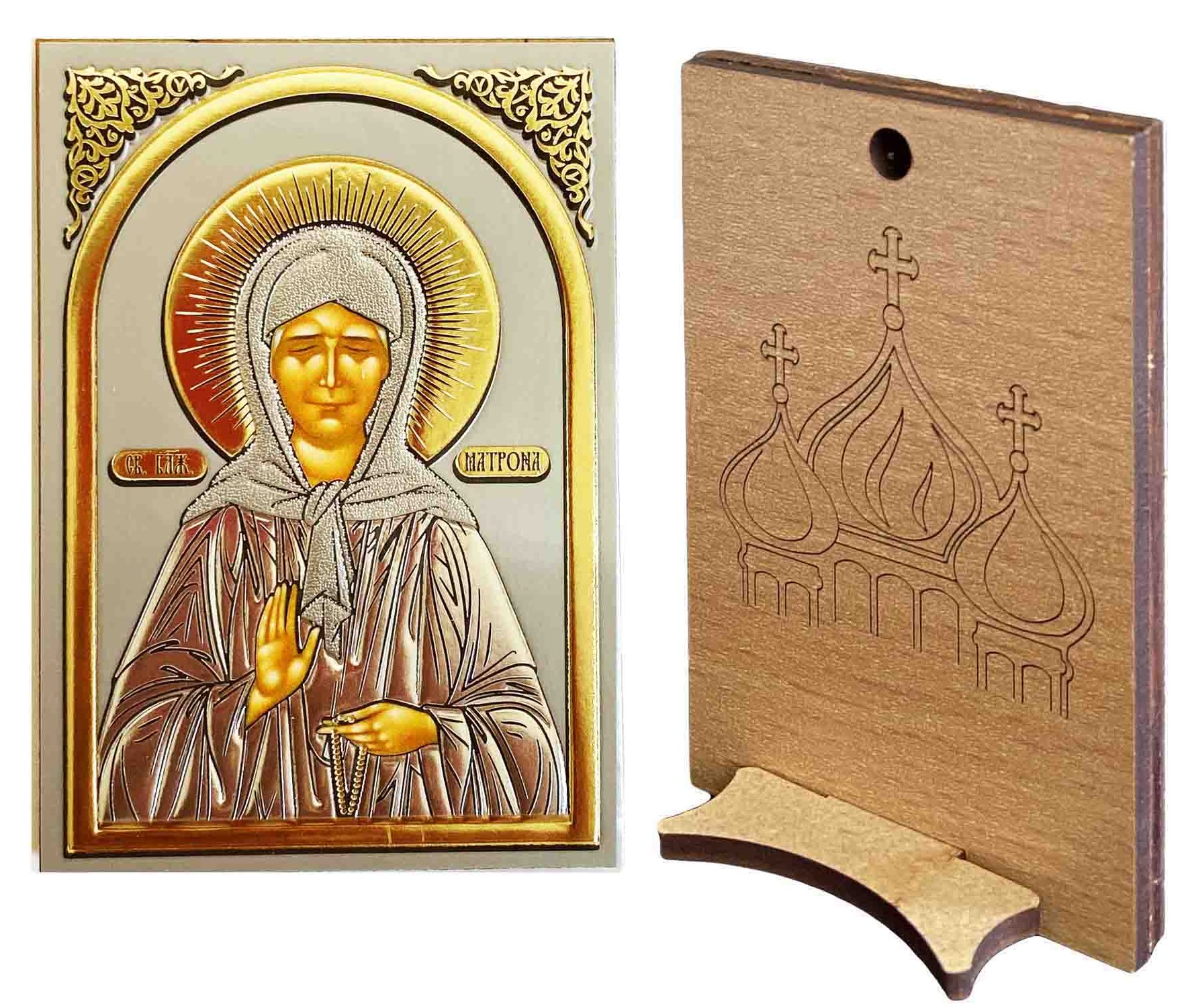 Ikona drevená so stojanom 6x9 cm Matrona