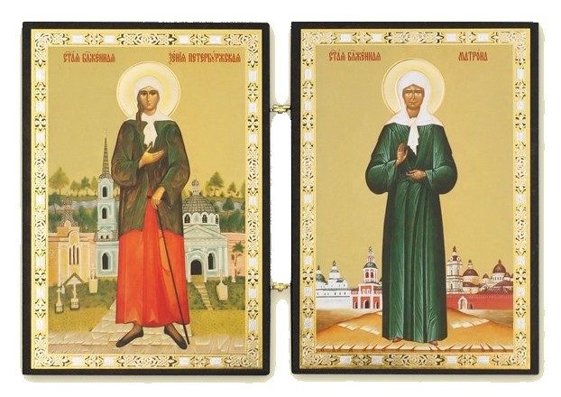 Ikona Ksenija a Matrona 9x13cm drevená dvojitá