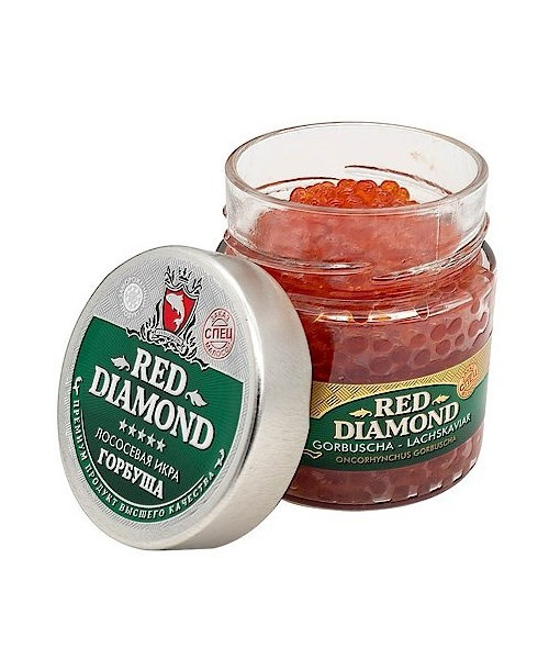 Kaviár z gorbuše od značky Red Diamond je prémiový produkt s jemnou maloslanou chuťou a jasne oranžovými zrnami. Vďaka absencii konzervantov si mrazený kaviár uchováva svoju čerstvosť a štruktúru. Kaviár z gorbuše je skvelou voľbou na slávnostné stoly, predjedlá a delikatesy.