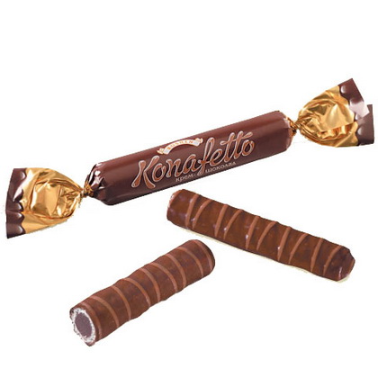 Konafetto Roshen - jemné oplatkové trubičky v čokoládové polevě s krémovou náplní z lískových oříšků. Bonbóny Konafetto Roshen si zachovaly svou legendární chuť známou z dětství. Udělejte radost sobě i svým blízkým - kupte si Konafetto Roshen domů nebo do kanceláře a dopřejte si možnost vychutnat si skvělou chuť kdykoli.