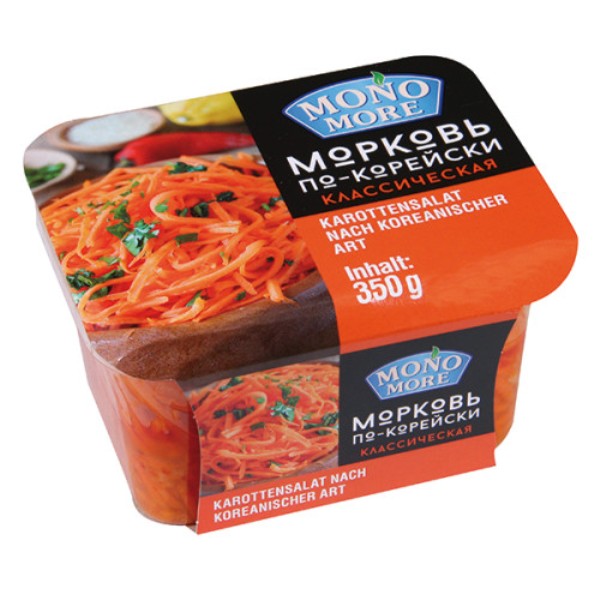 Složení: mrkev 86%, řepkový olej, česnek, cukr, sůl, ocet, koření, konzervační látky: E202, E211; barvivo: extrakt z papriky, olivový olej.