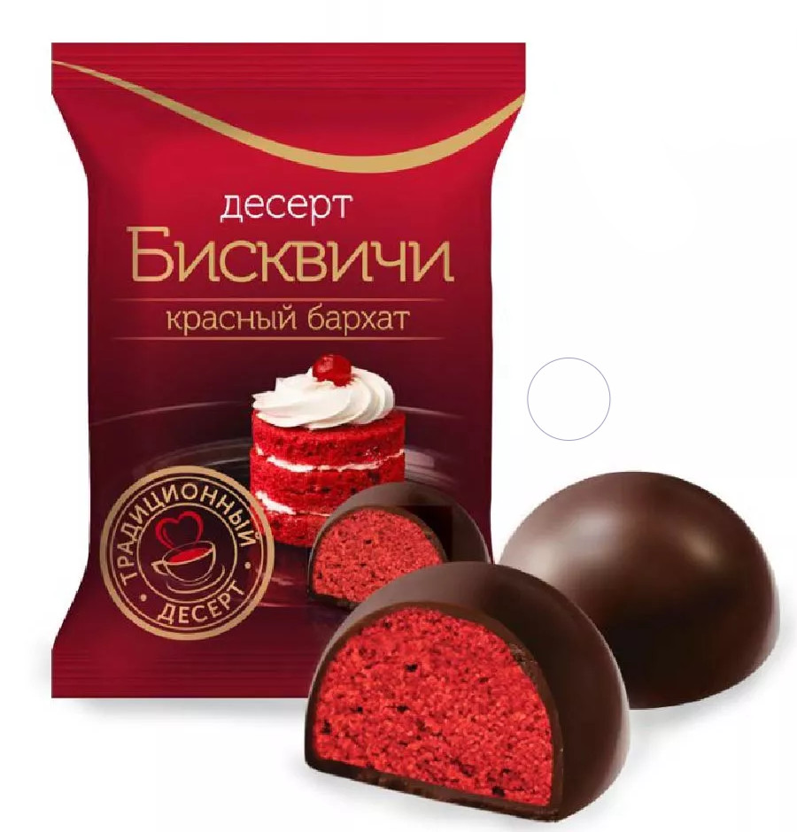 Krasnyj Barchat Biskviči — to je lahodný dezert s měkkým piškotem sytě červené barvy, doplněným jemnými čokoládovými tóny. Uvnitř se nachází jemný smetanovo-vanilkový krém a nahoře tenká poleva, která dodává pochoutce dokonalou chuť a lákavý vzhled. Díky nadýchané struktuře a harmonickému spojení sladkosti a aroma se tyto sušenky skvěle hodí k čaji, kávě nebo jako malé sváteční pohoštění.