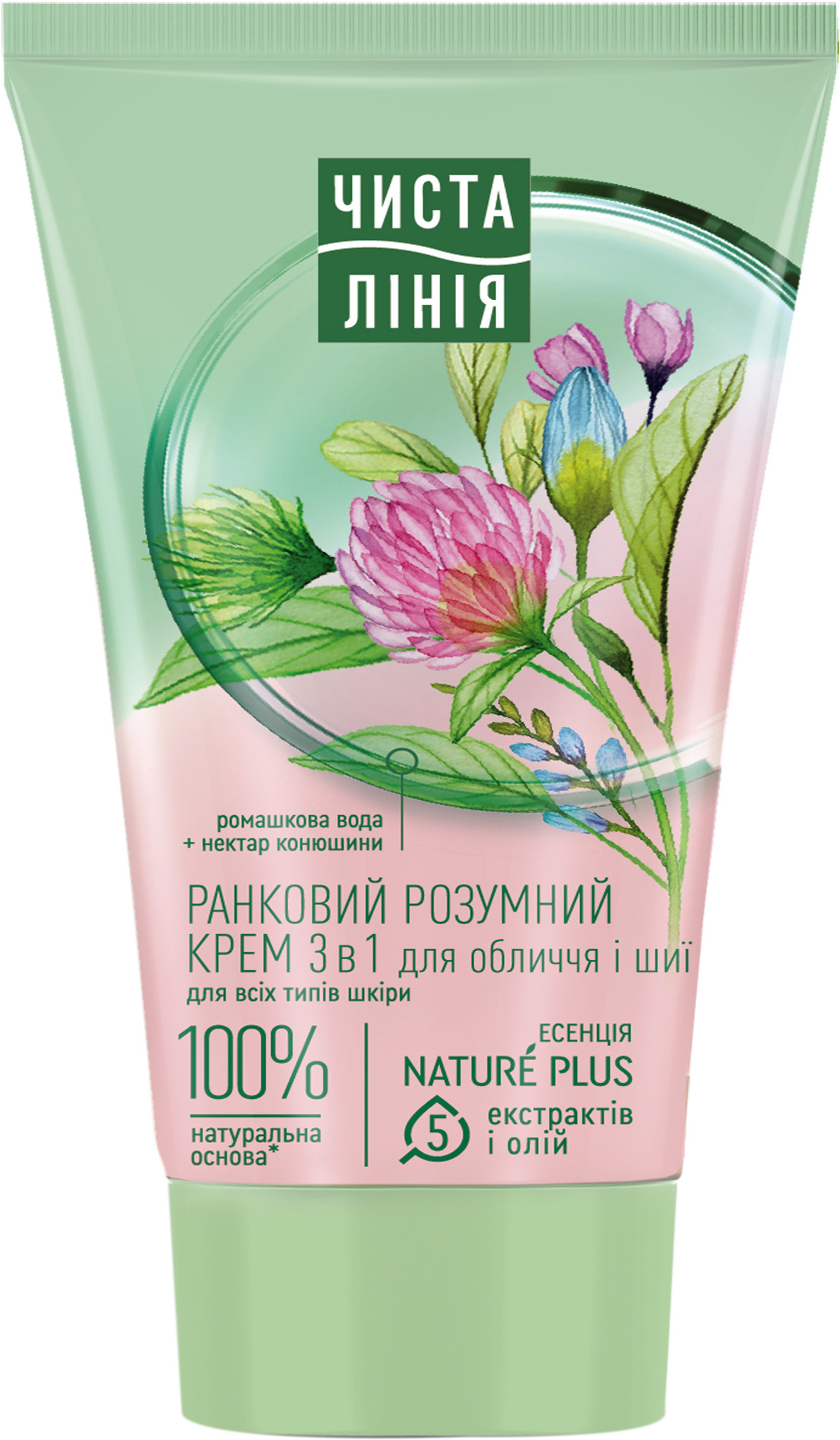Produkt obsahuje esenci Nature Plus: 5 extraktov a olejov (extrakt z verbeny, pivoňky, mandľový olej, ľanový olej, olivový olej). Je obohatený o harmančekovú vodu a nektár červenca. Krém poskytuje liftingový efekt, hydratáciu, osvieženie, výživu pokožky. Je vhodný pre všetky typy pleti, normalizuje hydratačnú rovnováhu, poskytuje omladzujúci efekt. Produkt obsahuje zložky z 100% prírodnej bázy.