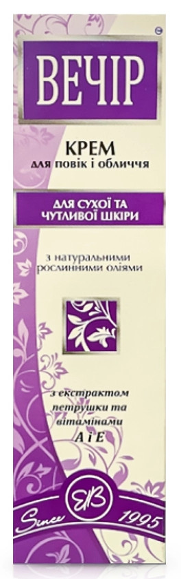 Krém na oči a tvár „Večer“ od značky Heler Kosmetiks je účinný prostriedok na hydratáciu a obnovu pleti večer. Vďaka svojej jemnej textúre a výživným zložkám krém hlboko preniká do pleti, vyživuje ju, pomáha obnoviť vodnú bilanciu a zlepšuje elasticitu pokožky. Ideálna pre nočnú starostlivosť, poskytuje pleti potrebnú výživu a hydratáciu, čo prispieva k jej obnove a posilneniu počas nočného spánku.