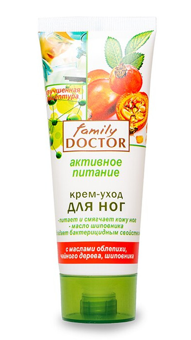 Krém Family Doctor Aktívna výživa je účinný krém na pravidelnú starostlivosť o pokožku nôh. Výborne sa hodí na zmäkčenie, výživu, úľavu od únavy a ochranu chodidiel. Ideálny na večernú starostlivosť po aktívnom dni.