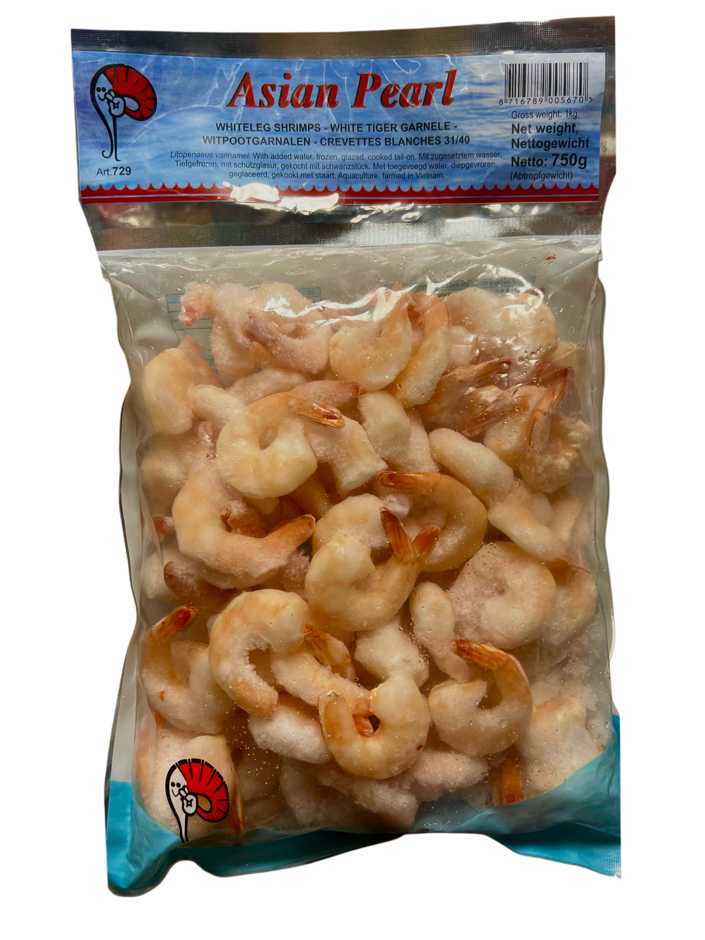Krevety hlboko mrazené, varené, olúpané a vykuchané.