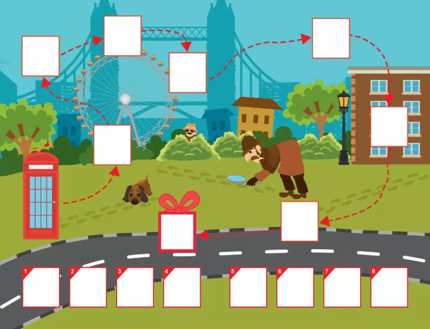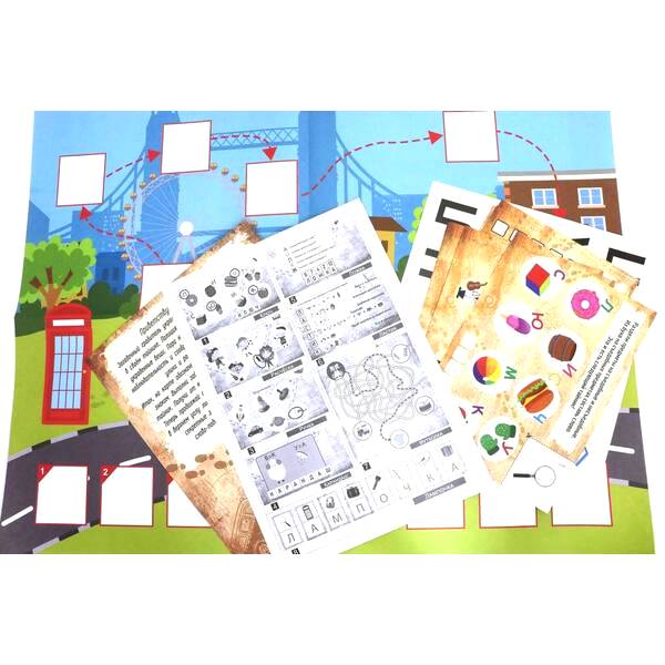 Herný set obsahuje: obálku, mapa, vložku so samolepkami, list od detektíva, návod a 8 listov s úlohami.