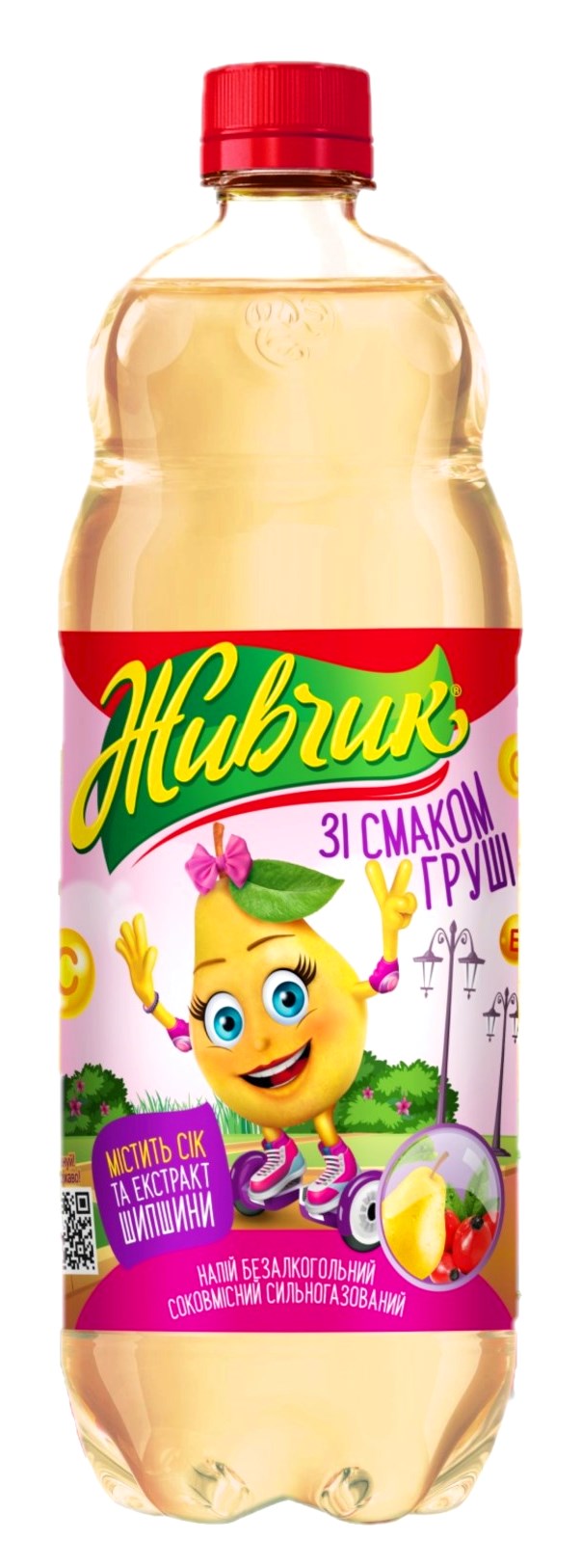 Zloženie: Voda, glukózo-fruktózový sirup s bielym cukrom alebo cukrom, koncentrovaná hrušková šťava (obsah šťavy v hotovom nápoji 1,0%), regulátor kyslosti kyselina citrónová, prírodná aróma "Hruška", antioxidant kyselina askorbová, prírodný sodný benzoát, , potravinárske farbivo beta-karotén.
