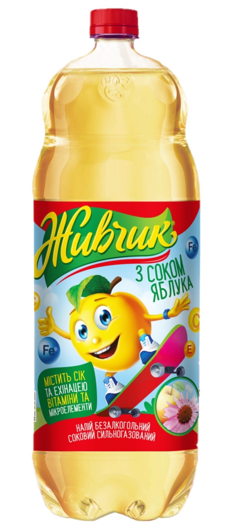 Zloženie: Voda, glukózo-fruktózový sirup s bielym cukrom alebo cukrom, koncentrovaná jablčná šťava (koncentrácia šťavy v hotovom nápoji je 10%), regulátor kyslosti kyselina citrónová, prírodná aromatizujúca látka Aróma prírodné jablko, tinktúra, konzervant benzoatkorózny sodný.