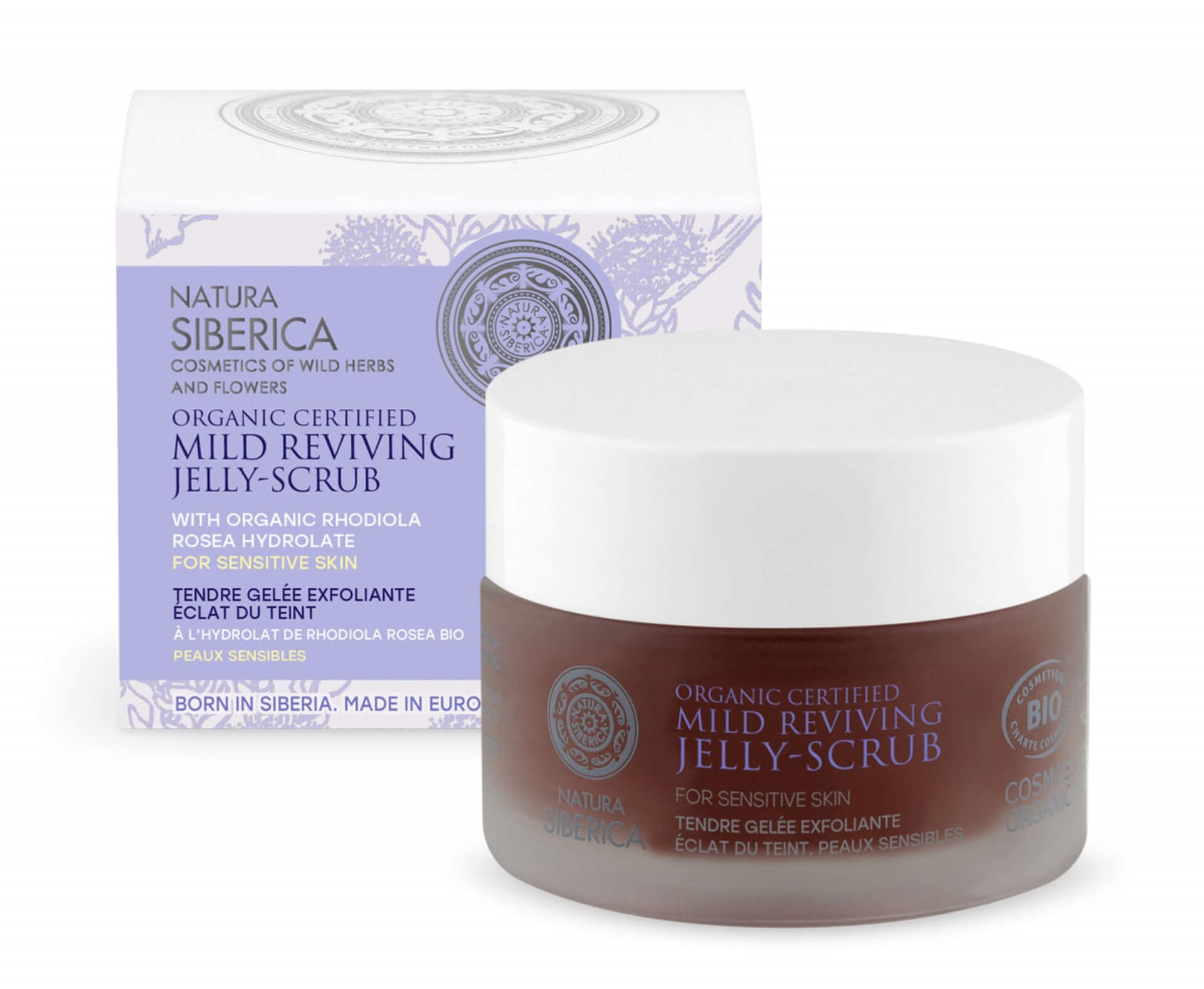 BIO CERTIFIKOVANÝ želé peeling pre citlivú pokožku s organickým hydrolátom z rhodiola rosea. Tento peeling jemne čistí a vyrovnáva tón pleti, zanecháva ju neuveriteľne jemnú a žiarivú. Rhodiola rosea, bohatá na organické kyseliny, pôsobí upokojujúco a chráni pred vplyvmi prostredia. Organický sibírsky cédrový olej, jedinečný prírodný zdroj polynenasýtených kyselín, vitamínov E a F, vyživuje a zjemňuje pokožku. Kyselina hyalurónová vyživuje a hĺbkovo hydratuje pokožku, zvyšuje jej pevnosť a pružnosť. Vitamín E je silný antioxidant, ktorý pomáha spomaľovať proces starnutia pokožky.