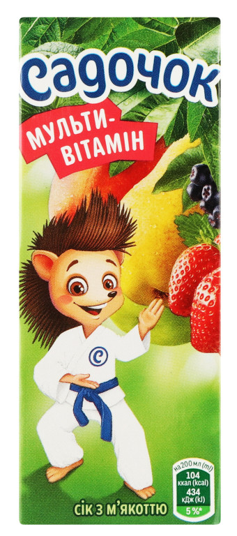 Zloženie: jablkové pyré (37,8 %), šťava z arónie čiernoplodnej (1,4 %), broskyňové pyré (0,3 %), hruškové pyré (0,3 %), jahodové pyré (0,2 %), cukrový sirup, glukózovo-fruktózový sirup, regulátor kyslosti kyselina citrónová, vitamíny E, B1, B2, B6, B9, PP, B5, C, B12, B7, prírodná aróma „Jahoda“, glukózovo-fruktózový sirup.