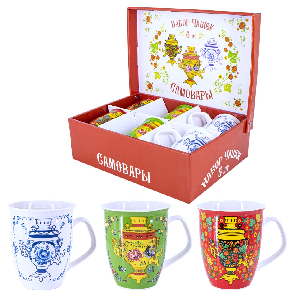 Sada hrnčekov Samovary v darčekovom balení. Pre 6 osôb, 330 ml