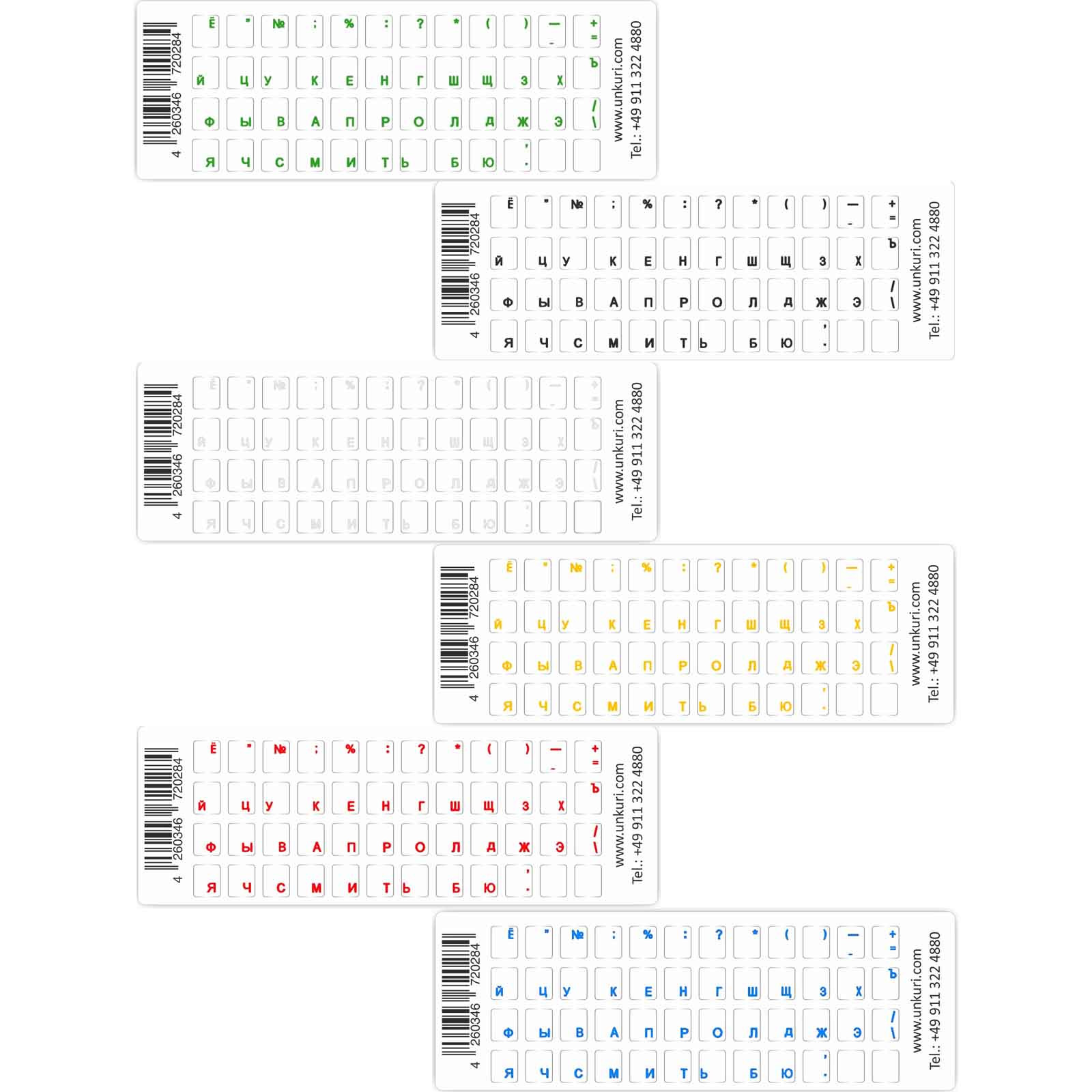 Nálepky na klávesnicu rôzne farby (rus.)