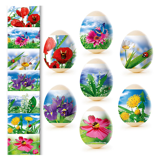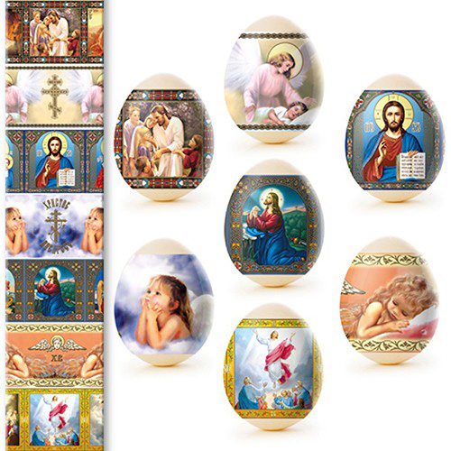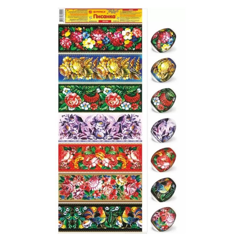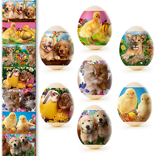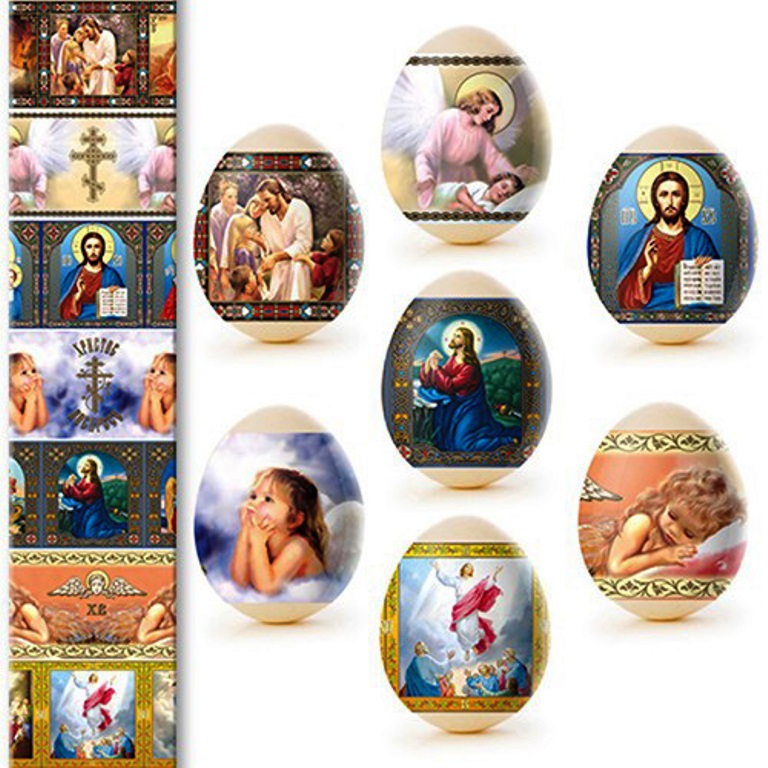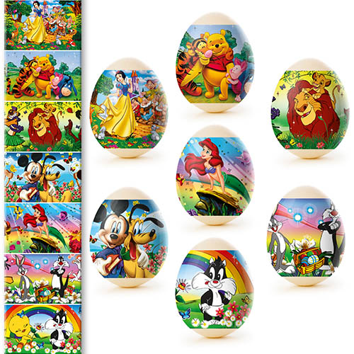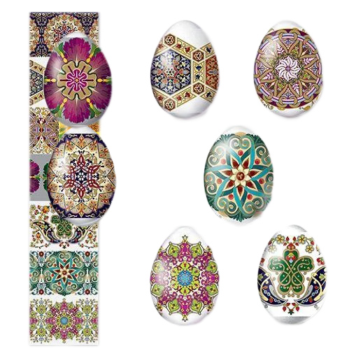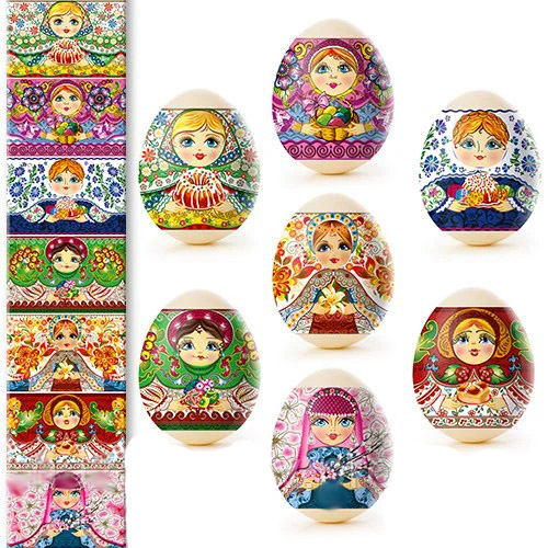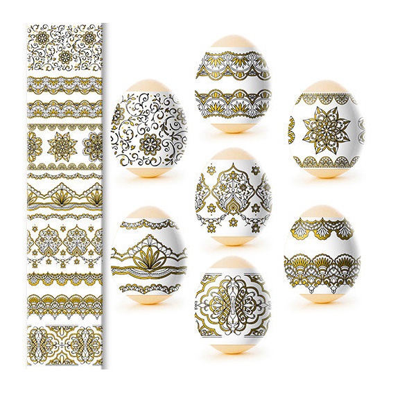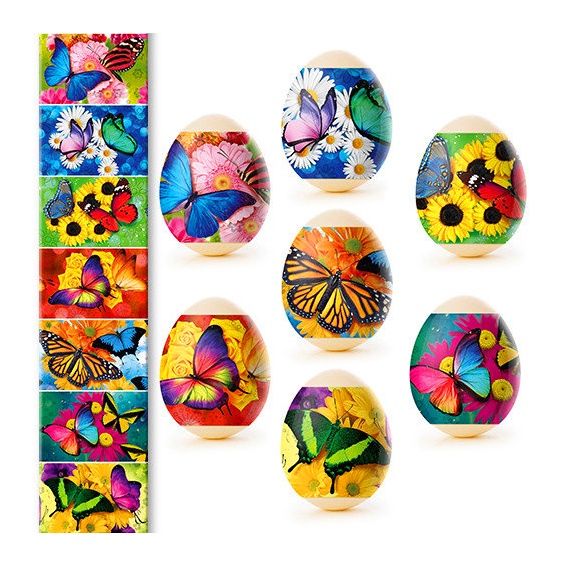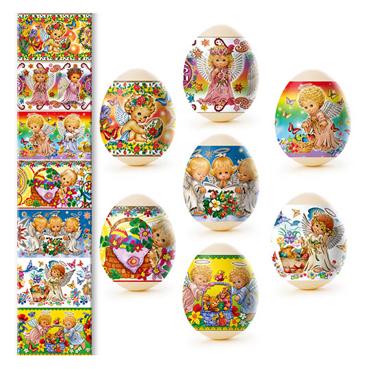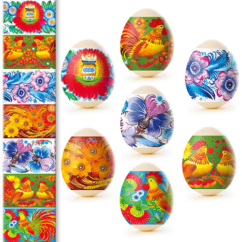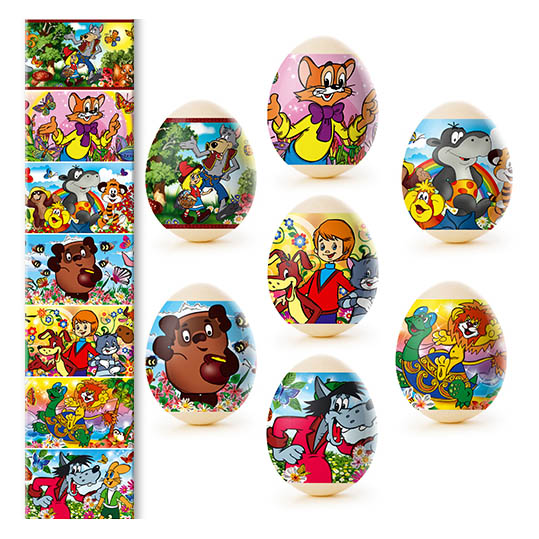 Sada tepelných nálepiek na veľkonočné vajíčka – 7 ks, rôzne druhy. Vyrobené zo špeciálnej fólie s jasnými motívmi, ktorá sa pri zahriatí pevne prilieha k vajíčku a vytvára upravenú a krásnu dekoráciu. Použitie tepelných nálepiek umožňuje rýchlo, jednoducho a lacno ozdobiť vajíčka veľkonočnými motívmi, čím sa stávajú slávnostnými a efektnými.