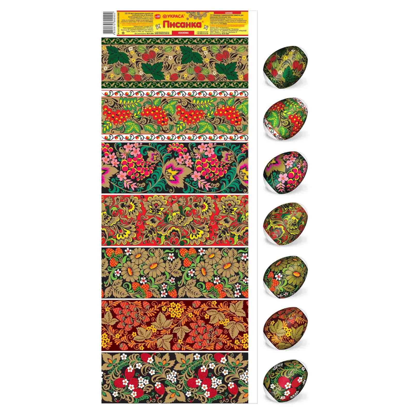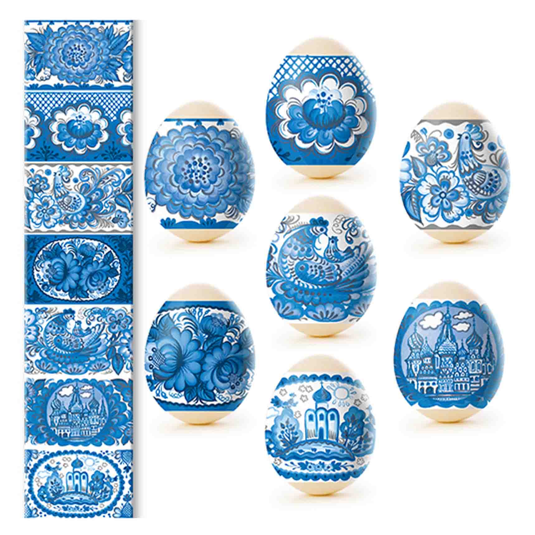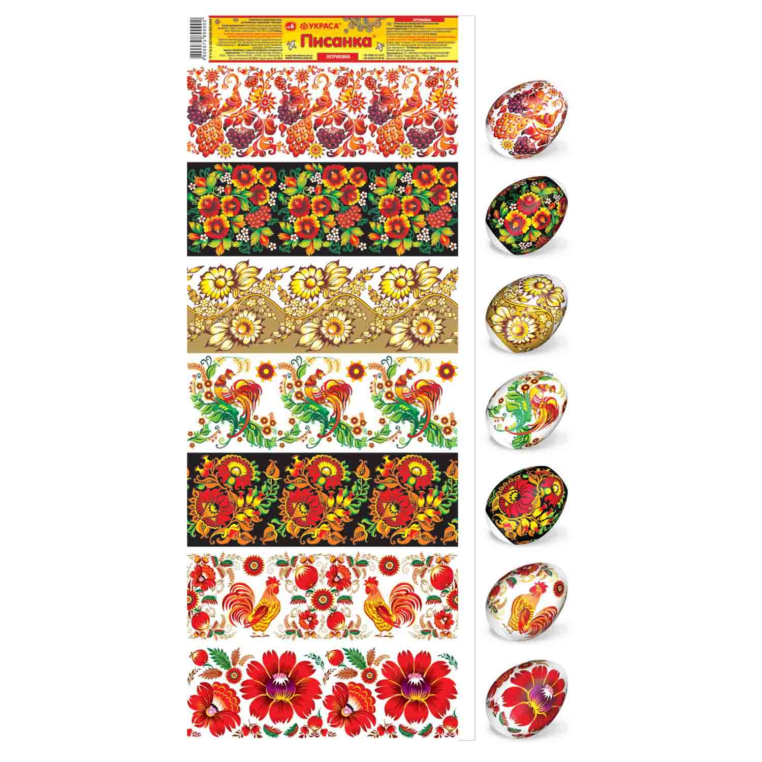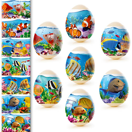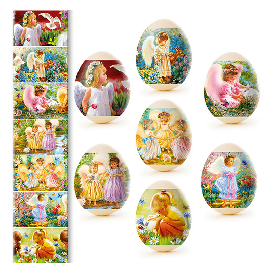 Sada tepelných nálepiek na veľkonočné vajíčka – 7 ks, rôzne druhy. Vyrobené zo špeciálnej fólie s jasnými motívmi, ktorá sa pri zahriatí pevne prilieha k vajíčku a vytvára upravenú a krásnu dekoráciu. Použitie tepelných nálepiek umožňuje rýchlo, jednoducho a lacno ozdobiť vajíčka veľkonočnými motívmi, čím sa stávajú slávnostnými a efektnými.
